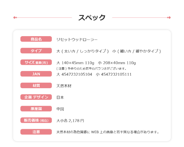 【タイプ】大(太い方/しっかりタイプ)【サイズ(約)】大:140×45mm【重量(約)】各110g【材質】天然木材【企画デザイン】日本【原産国】中国
