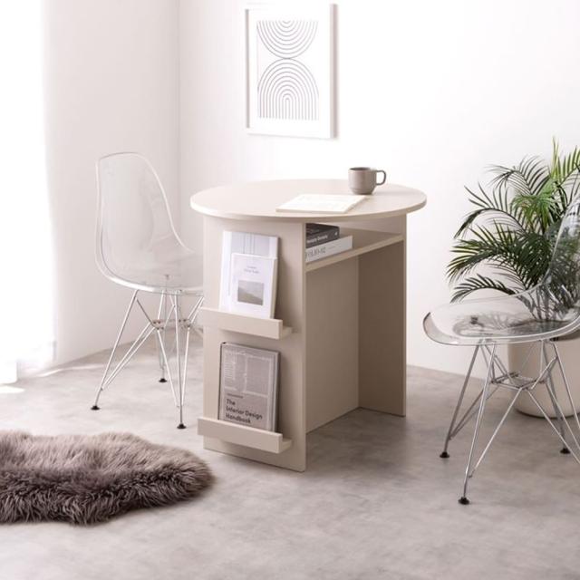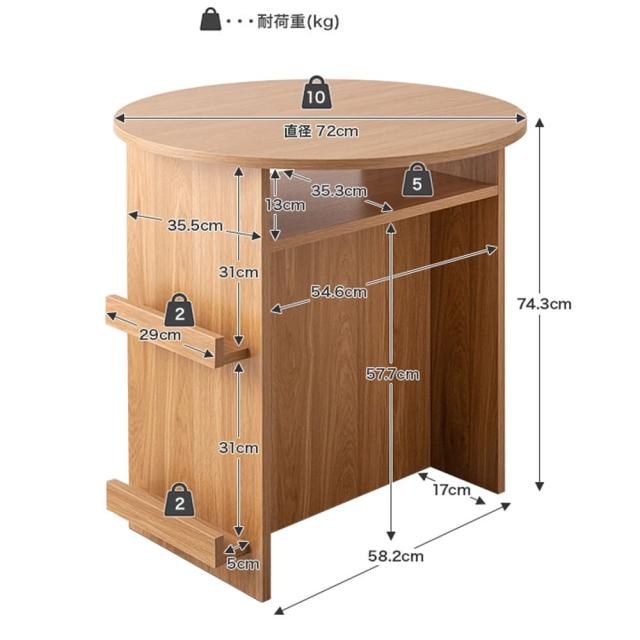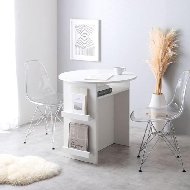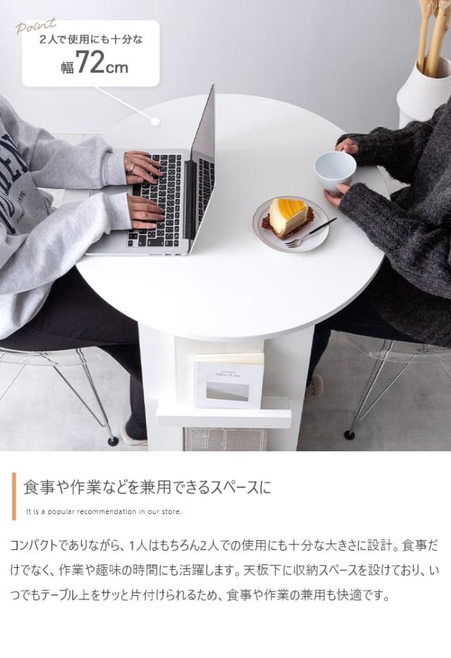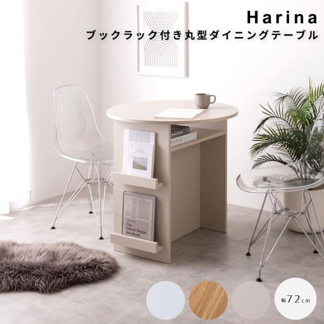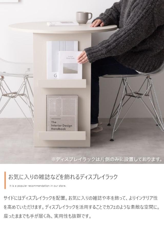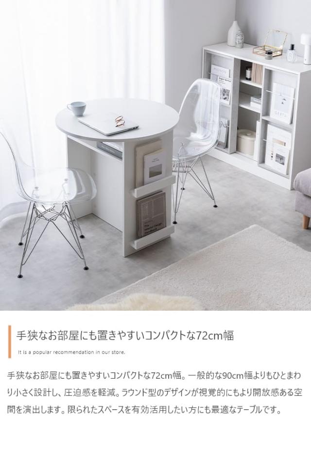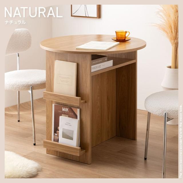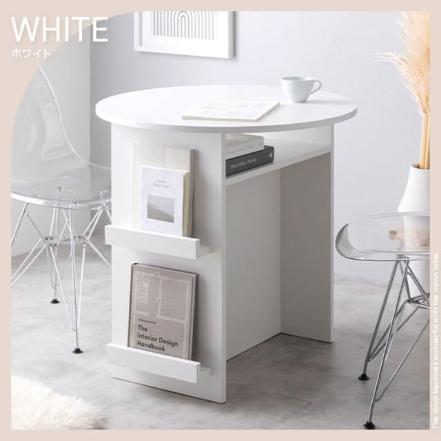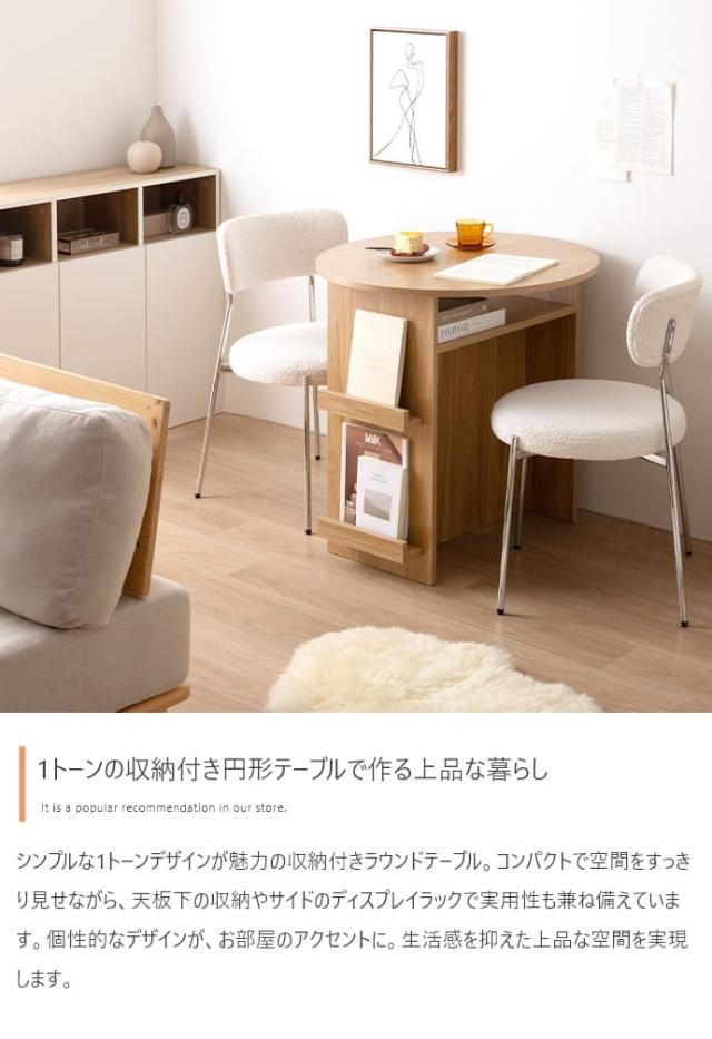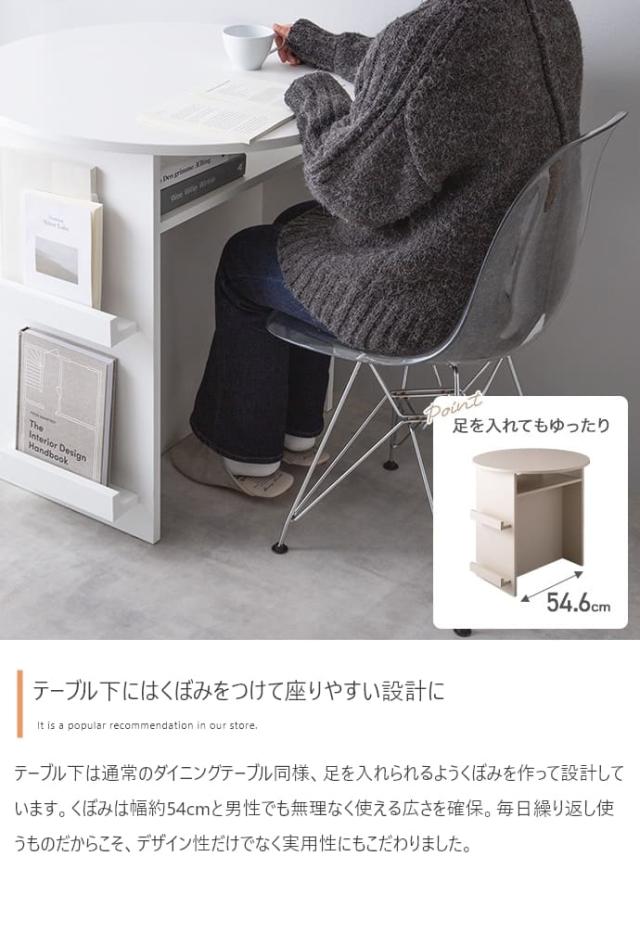 ブックラック付き丸型ダイニングテーブル ダイニングテーブル ラウンド 丸形 円形 食卓 机 デスク 収納 棚付き コンパクト