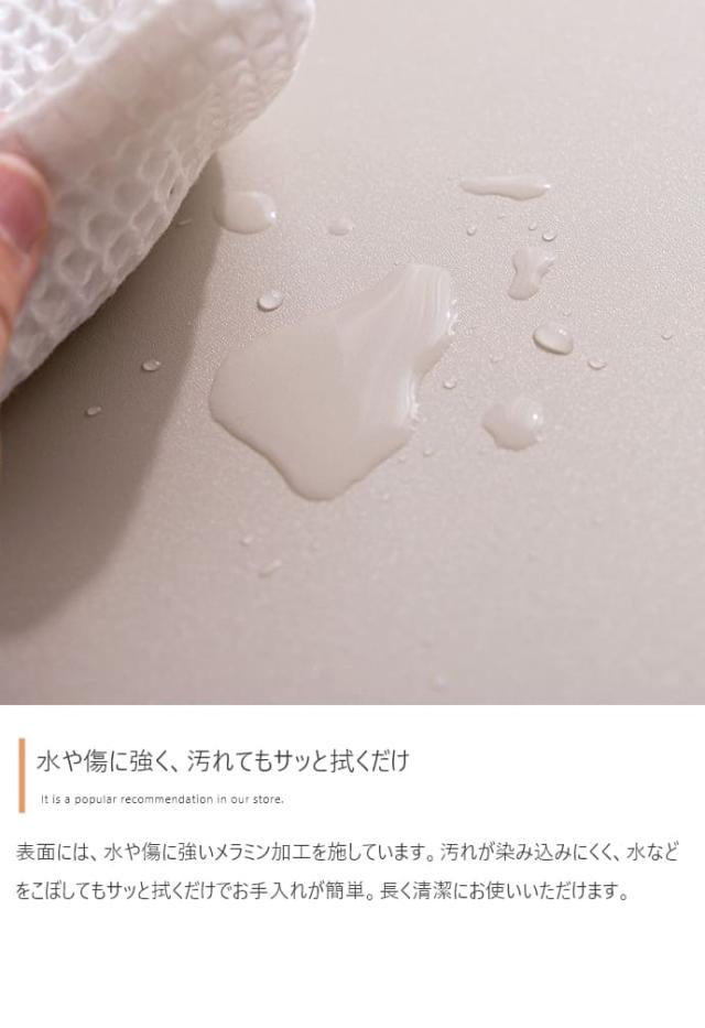 おしゃれなデザインに加え、水や傷に強いメラミン加工を施しているため、汚れてもサッと拭くだけでお手入れ簡単。