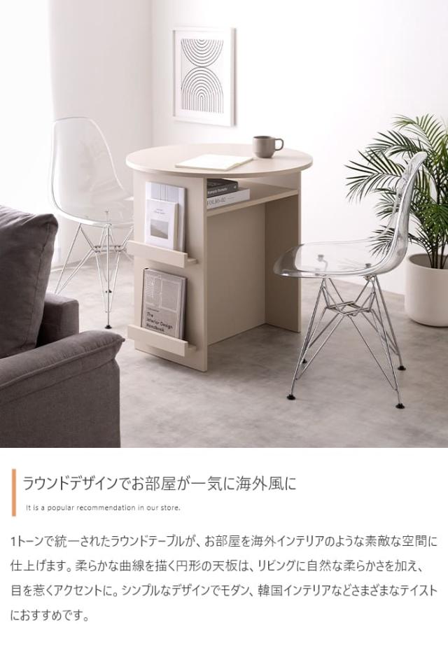 インテリアの主役になる美しいフォルムと、日常使いに便利な収納機能を兼ね備えたラウンドテーブル。