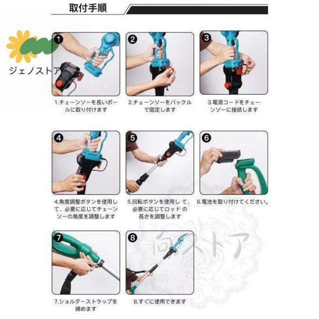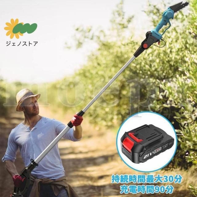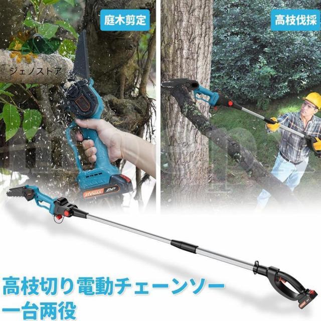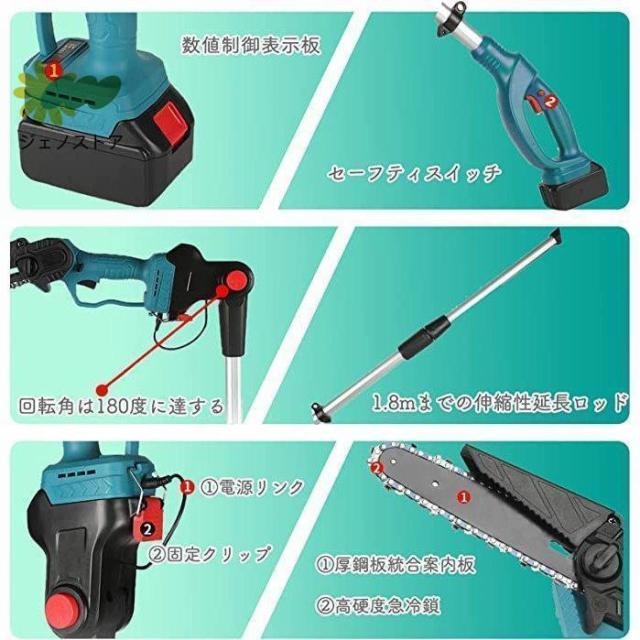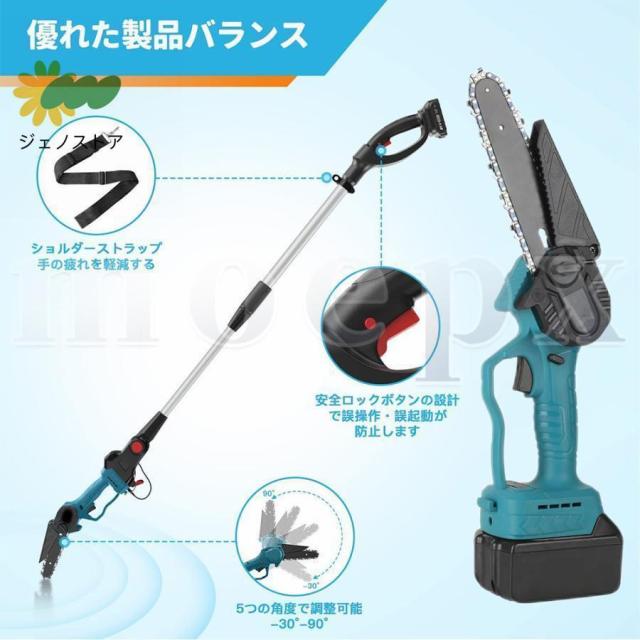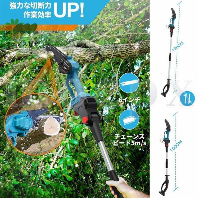 高枝切り電動チェーンソー 充電式 チェーンソー 電動 高枝ノコギリコードレス 130-200cm 伸縮可能 長さ調節 充電式ポールチェーンソー バッテリー互換 枝切ばさみ
