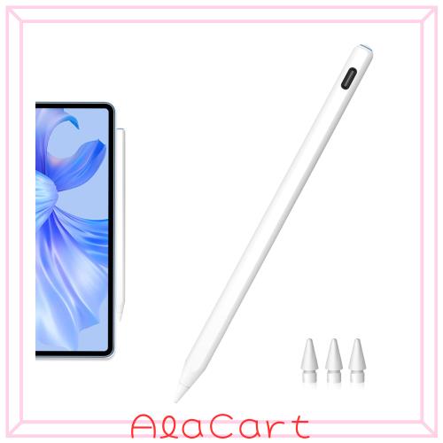 【Tecnlpow・2024最新型・15分高速充電】タッチペン ipad用 ペンシル アップルペンシル Type-c 充電/磁気吸着/傾き感知/誤作動防止/超高感度/極細/0遅延 apple ipad pencil(2018-2024)iPad 6/7/8/9/10, iPad Air 3/4/5, iPad Mini 5/6, iPad Pro 11”/12.9”対応/交換用ペン先*3個 白い