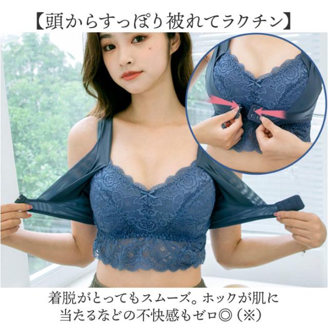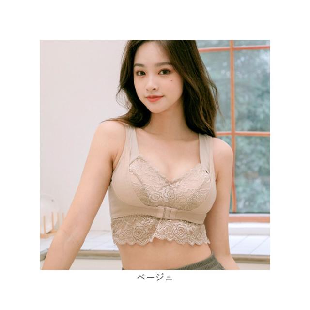 ナイトブラ 通販 ノンワイヤーブラジャー ブラジャー 1/2カップブラ フロントホック 下着 レース インナー ワイヤーなし ノンワイヤー下着 レース下着 レディース 大人