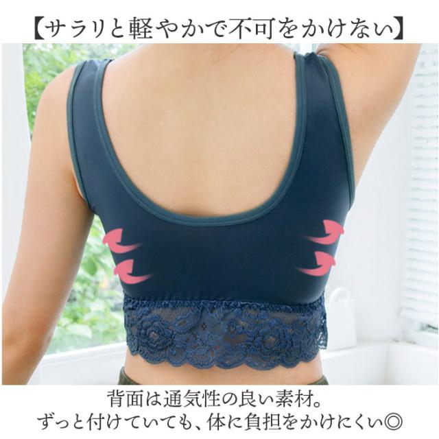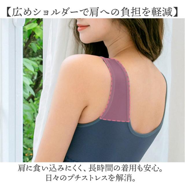 | 商品説明 | 【リラックスタイムもバストケア】 ・いつでもバストを優しくホールド。お家時間や就寝中も快適な付け心地の「ナイトブラ」。 【理想の美バストへと導くアイテム】 ・フロントアンダー部分に、3段階調節できるベルト付き。横流れを防いでバストメイク♪ 【包みこんですっきりリフトアップ】 ・バスト下部から肩にかけて、しっかり支えるリフトアップカット。脇高設計でサイドもカバー。 【締め付けがなくストレスフリー】 ・窮屈感が苦手な方に嬉しい、ノンワイヤー仕様。伸縮ゴムで、アンダーに心地よくフィット。 【バストのカタチをふんわりキープ】 ・優しい手触りで立体的なソフトパッドが、バストを支える!取り外して洗濯、型崩れの心配不要。 【頭からすっぽり被れてラクチン】 ・着脱がとってもスムーズ。ホックが肌に当たるなどの不快感もゼロ◎ (※)アンダー部分にホックがありますが、肌には触れないつくりです。 【広めショルダーで肩への負担を軽減】 ・肩に食い込みにくく、長時間の着用も安心。日々のプチストレスを解消。 【サラリと軽やかで不可をかけない】 ・背面は通気性の良い素材。ずっと付けていても、体に負担をかけにくい◎ 【シンプルな中に上品さをプラス】 ・レースを取り入れ、落ち着きのある大人のデザイン。お気に入りのカラーをチョイス。 |
