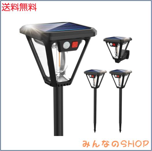 ソーラーライト 屋外 ガーデンライト 4個セット 電球色 自動点灯 埋め込み 壁掛け センサーライト IP67防水 電気代0 人感センサー LEDラ