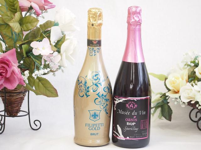 辛口スプマンテスパークリングワインと国産ワインセット(MdV オアシス ブラッククイーンピンクロゼスパークリングワイン辛口(長野県)750mlフィリペ