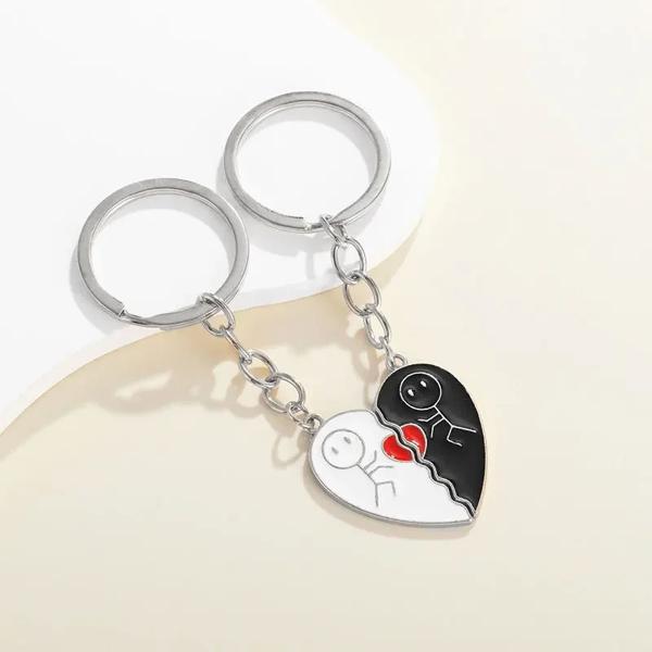 2023 New Design:Creative Stickman Black and White Heart Charm Couple Magnetic Necklace