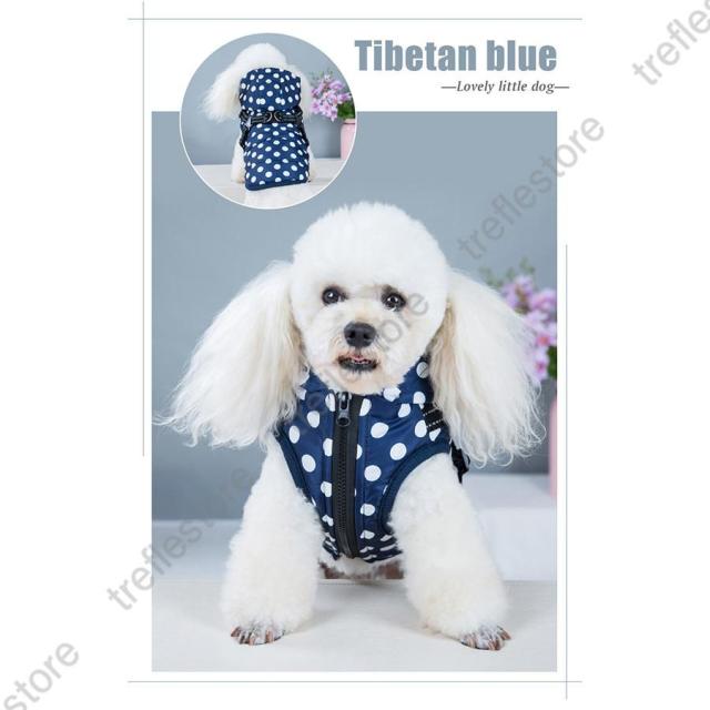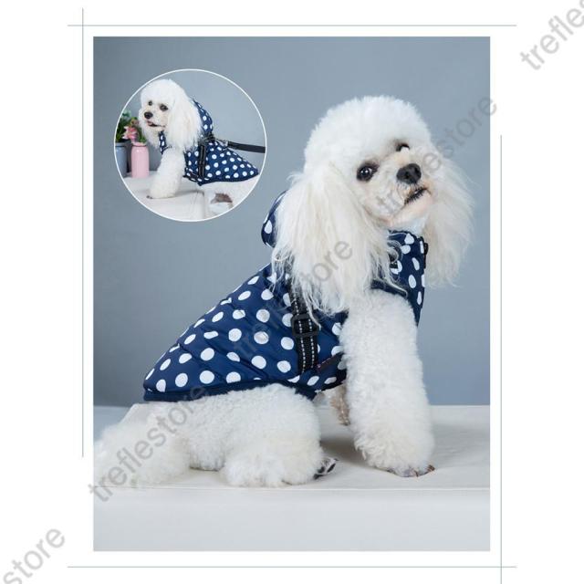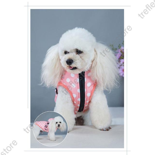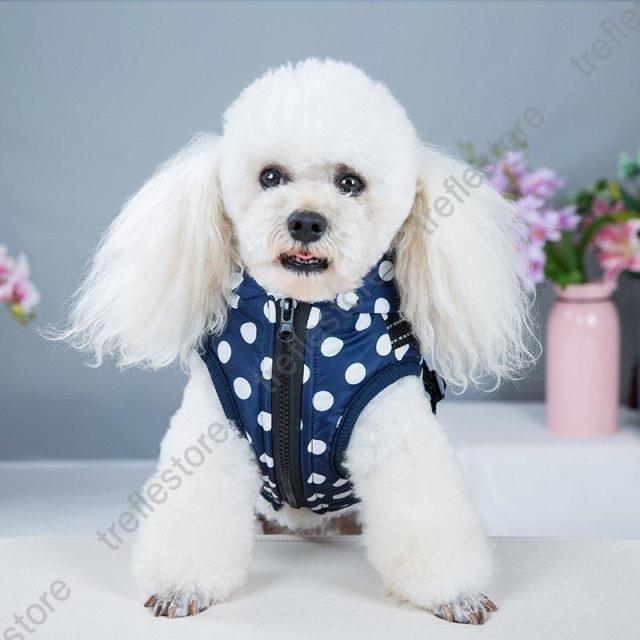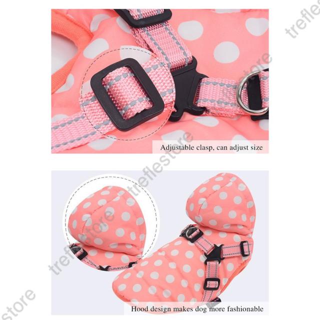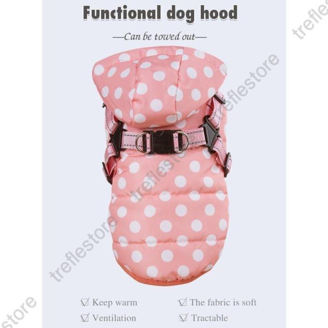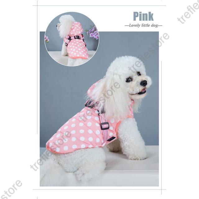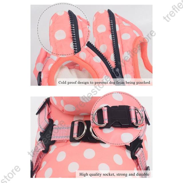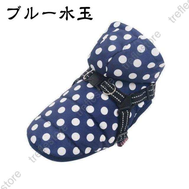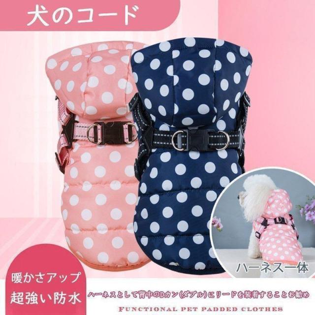 【ポイント5倍!】犬用ベスト ダウン風ベスト 水玉柄 犬用アウター ペット服とハーネス一体 コート ドッグウェア 中綿 秋冬服 小型犬 中型犬 ジップアップ 防寒 温かい 犬服