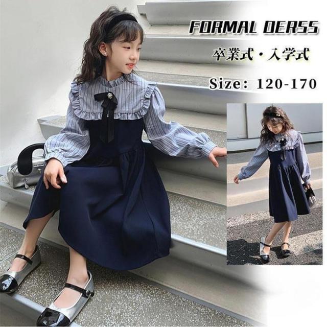 【ポイント5倍!】卒業式 スーツ 女の子 卒服 ワンピース ネイビー 小学生 ジュニア 韓国 ピアノ発表会 フォーマル 卒園式 卒業式 入学式 結婚式 イベント 洋服 子供服
