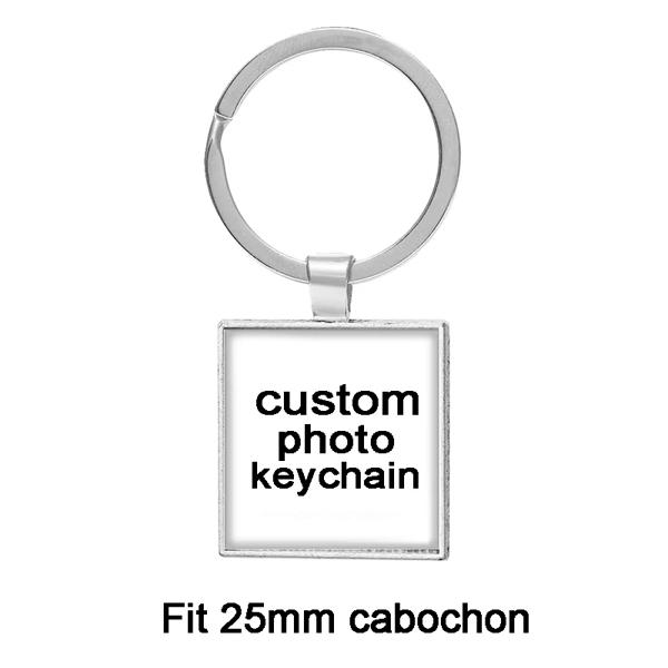 男性と女性のためのパーソナライズされた写真の写真,ガラスカボションキーホルダー,キーリングケース,シルバーメッキのキー
