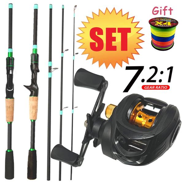 キャスティングリールとキャスティングロッドのセット,カーボンベイトキャスティング,ルアー,タックルコンボ,バスマス,重量3.5g-14g, 1.8m, 2.1m