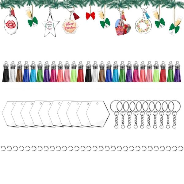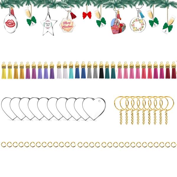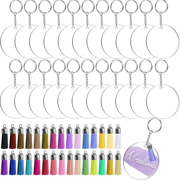 PACKAGE INCLUDES- 10 pieces 2 inch diameter clear round acrylic blanks, 10 pieces leather tassles pendant Color, 10 pieces key rings with chain and 10 pieces jump rings
