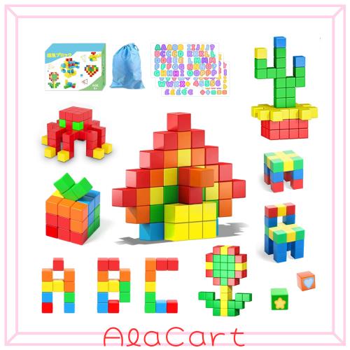AMYCOOL マグネットパズル マグネットブロック 64個 30mm 立体パズル 積み木 知育玩具 男の子 女の子 3D おもちゃ 図形 算数 立方体 マグ
