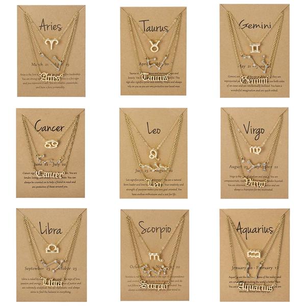 女性のための干支のペンダント付きネックレスのセット,干支の12の兆候のペンダント付きネックレスのセット,誕生日のジュエリー,段ボールのカード,ピース/セット