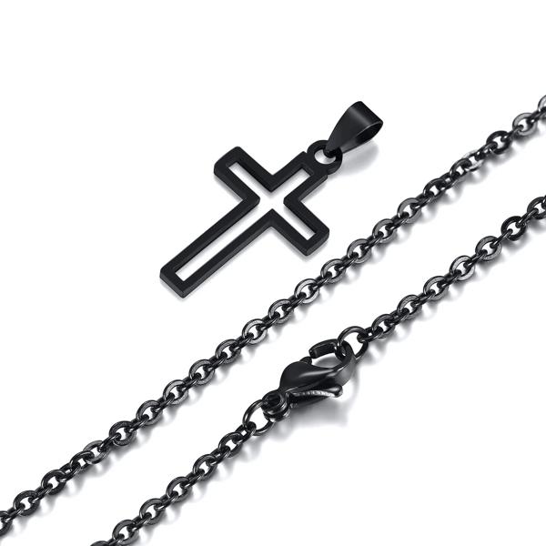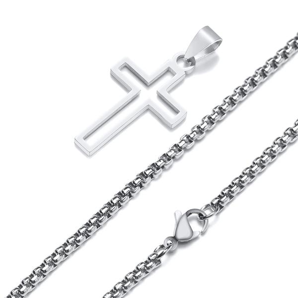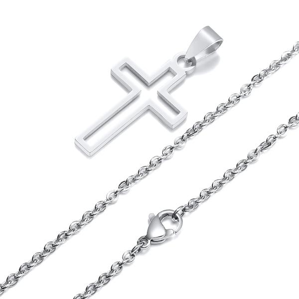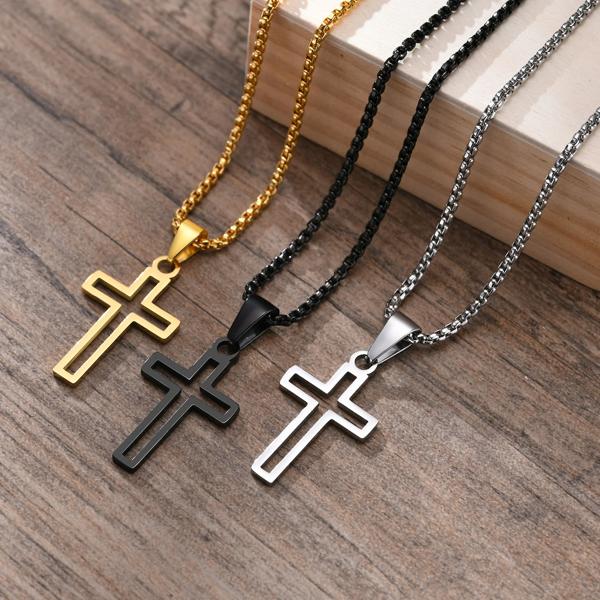 男性用のクロスカットネックレス,ステンレス鋼,防水,中空ペンダント,宗教的な信仰,キリスト教の贈り物,ジュエリー