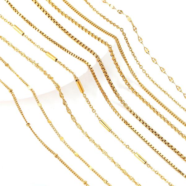 ステンレス鋼のボールチェーンとさまざまな色のネックレス,5個,45cm,調整可能なリング付き金メッキチェーン