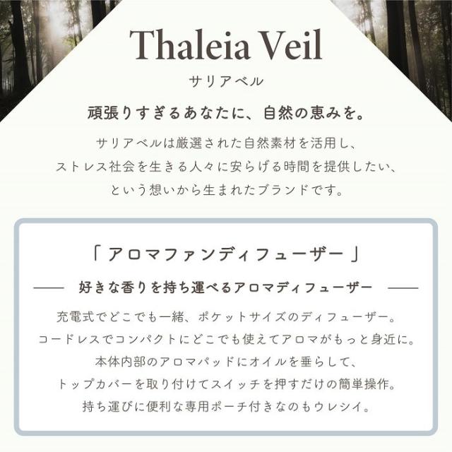 アロマ ディフューザー サリアベル コンパクトファンディフューザー USB充電式 精油専用 携帯用ポーチ付き 自動オフ機能 持ち運び 連続使用約8時間 アロマパッド予備2個付き インテリア 贈り物 ギフト
