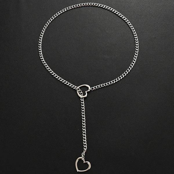 ハート型の女性用滑り止めチェーン,ステンレス鋼のロングネックジュエリー,ロックスタイル