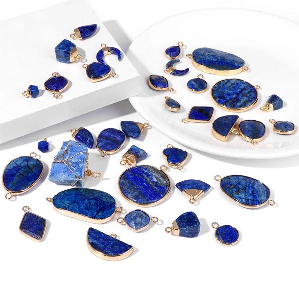 ラピスラズリビーズ,天然の青い石のペンダント,チャーム,ジュエリー作りのためのハートペンダント