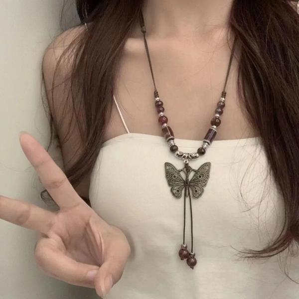 女性用ロングブラックローズメタルネックレス,セーターチェーン,アクセサリー,旅行,パーティー,フェスティバルギフト,ファッション,802156, 1個