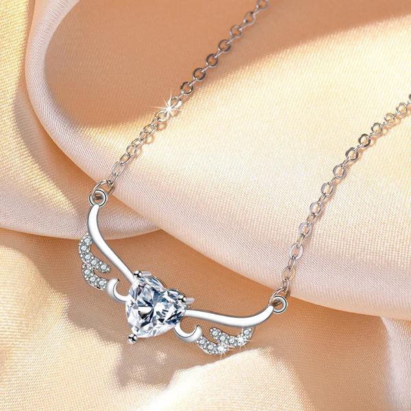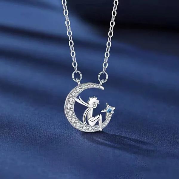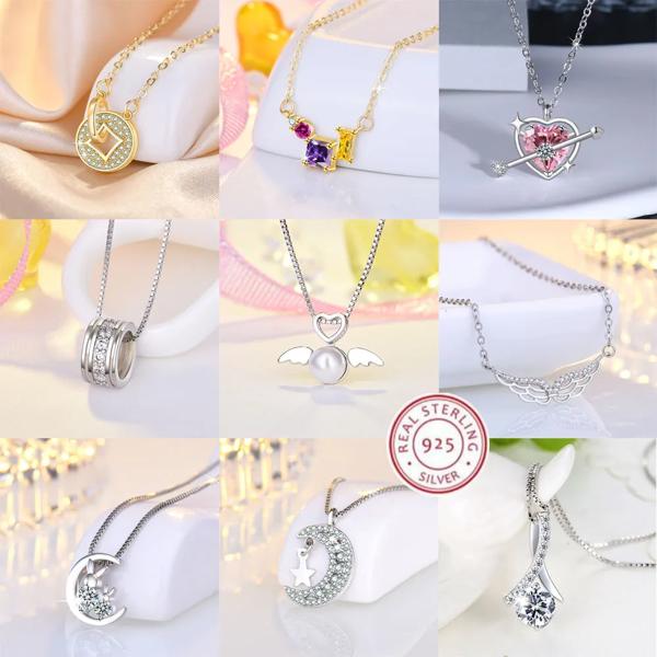 女性のための925スターリングシルバーのムーンネックレス,ペンダント,ジルコン,絶妙なジュエリーアクセサリー,ガールフレンド,学生の贈り物,ハートのファッション