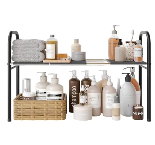 キッチン シンク下 収納ラック シンク下フリーラック ワイド 伸縮タイプ シンク下伸縮棚 キッチン収納棚 簡単組立 洗面台下 横幅調整可能 (棚板3枚 1段)