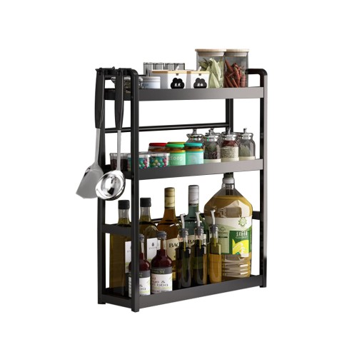 musltaiy 調味料ラック 多機能キッチン 収納スパイスラック卓上ラック大容量台所 収納ラック キッチンラック調味料棚(三段式) (3rd floor 14in, Black 黒)