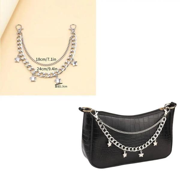 ハンドバッグ,金属,マルチレイヤーバッグ,キーホルダー,DIYハンドル,スターペンダント,ショルダーバッグ,アクセサリー,y2k用のパールチェーン