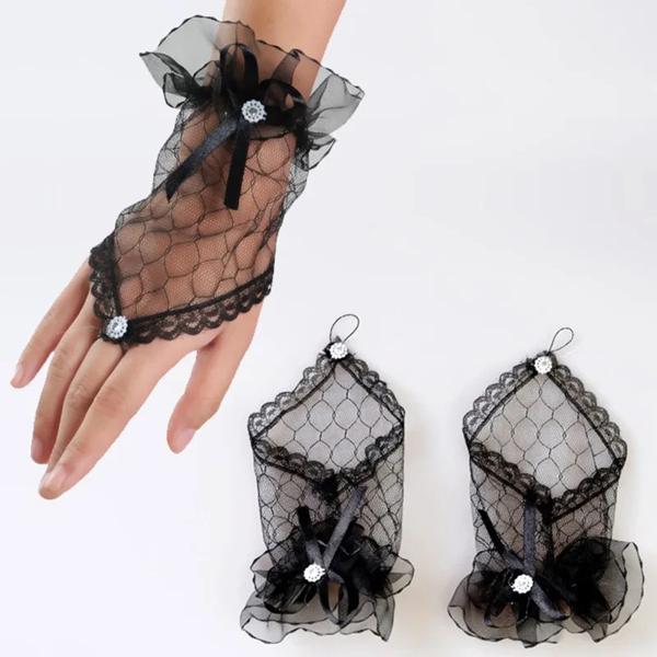 女性用ゴシックショートブラックグローブ,原宿レース,ロリータドレス,ガーゼボウ,ハンドスリーブ,網タイツ,ブライダルウェディング,ハロウィーン
