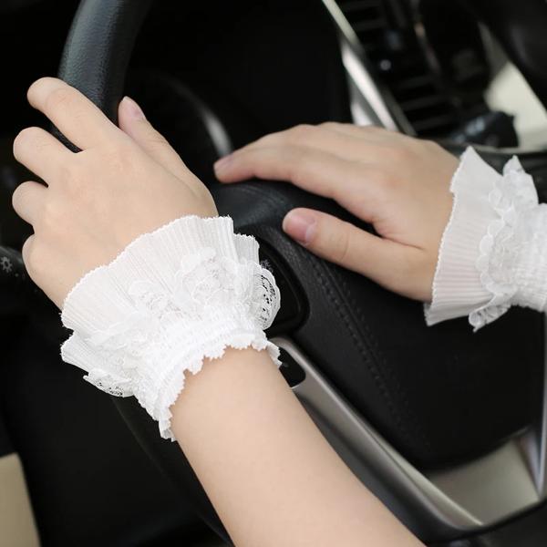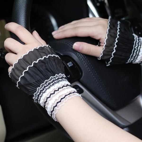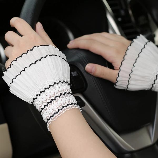 ロリータ-女性と女の子のためのレースの手袋,手の袖,手首の飾り,フリル,花柄,黒,白,伸縮性,エレガント,ショート