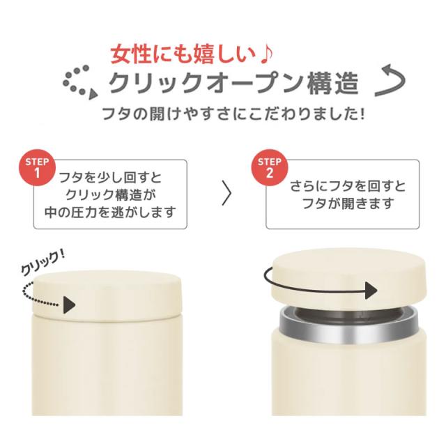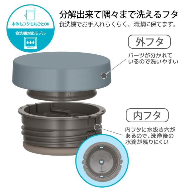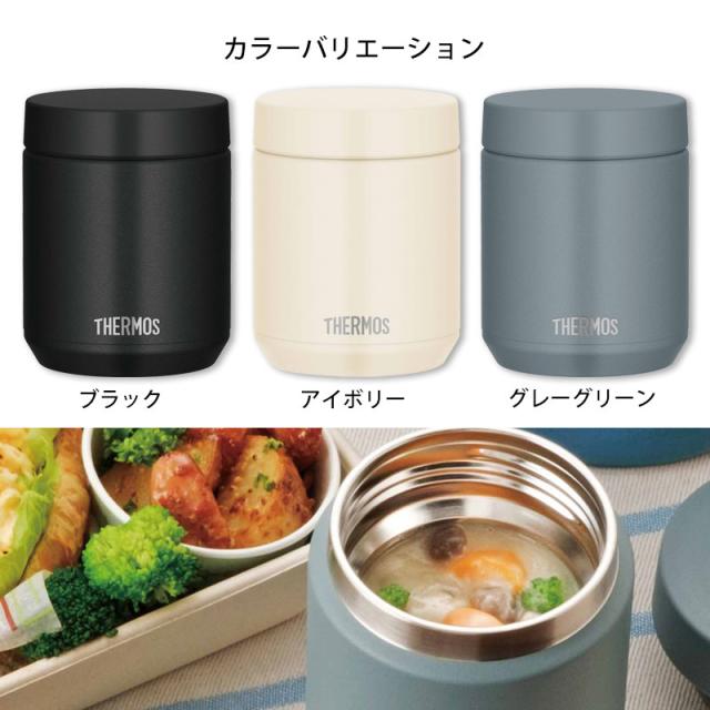 サーモススープジャーのスタンダードモデルが食洗機に対応して登場しました! 熱いものから冷たいものまで、いろいろ持ち運べるスープジャー。 サーモス製品の保温・保冷効果を毎日のお弁当にも! ステンレス製魔法びん構造による高い保温・保冷力で食べごろ温度をキープしてくれます。 曲げわっぱのお弁当とスープジャーで素敵なランチタイムを。 お弁当にスープやデザートをプラスするのに満足感のあるレギュラーサイズです。 ごろごろ具だくさんメニューも入れやすい広口タイプ。ランチの幅が広がります。 温かいスープやシチュー、お味噌汁で寒い冬も身体がぽかぽか温まります。 冷製パスタやサラダ、デザートは冷たいままをキープ!。 野菜やフルーツの食感も損なわれにくいです。 さっぱりとしたものが食べたい時にいいですね。 フタが開けやすいクリックオープン構造を採用! フタを少し回すとクリック構造が中の圧力を逃がします。 また、フタが薄いので、しっかり握れます。 フタはパーツが分かれるので、すみずみまで洗えてお手入れしやすく清潔に保てます。 本体もフタも丸ごと食洗機に対応。 内フタに水抜き穴があるので、洗浄後の水滴が残りにくい工夫も施されています。 口の部分が丸みを帯びた形状なので、やさしい口当たりです。 別売りの専用ポーチを使うと持ち運びしやすく、更に保温・保冷効果がアップ♪ サーモススープジャー JEDシリーズ (サイズ展開:300ml/400ml/500ml) 表示者 サーモス株式会社 住所 東京都港区芝4-1-23三NNビル ※保温効力とは、室温20℃±2℃において製品に熱湯を内フタ下端まで満たし、湯温が95℃±1℃のときから内フタと外フタを取り付けて縦置きにした状態で6時間放置した場合におけるその湯の温度です。 ※保冷効力とは、室温20℃±2℃において製品に4℃以下の水を内フタ下端まで満たし、水温が4℃±1℃のときから内フタと外フタを取り付けて縦置きにした状態で6時間放置した場合におけるその水の温度です。 「THERMOS」、「サーモス」はサーモス株式会社の登録商標、または商標です。 |