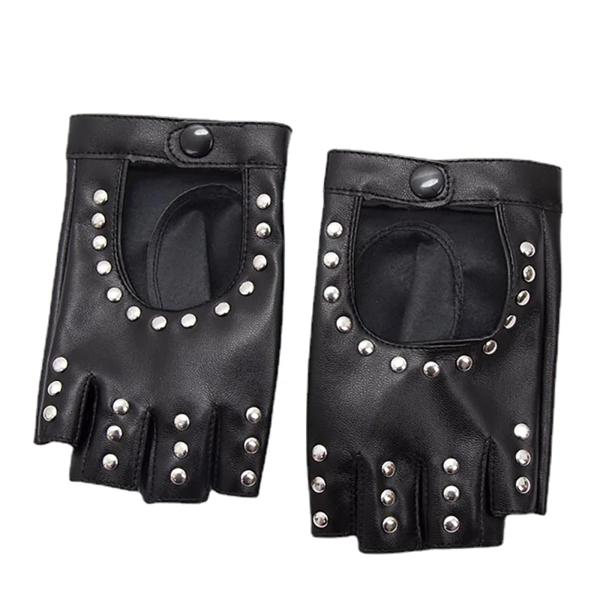 女性のための黒のパンクリベットショートpuレザーグローブ、ハーフフィンガー、指紋のないミトン、美しい、ヒップホップ運転、オートバイ、パーティー、クールな女の子に適しています