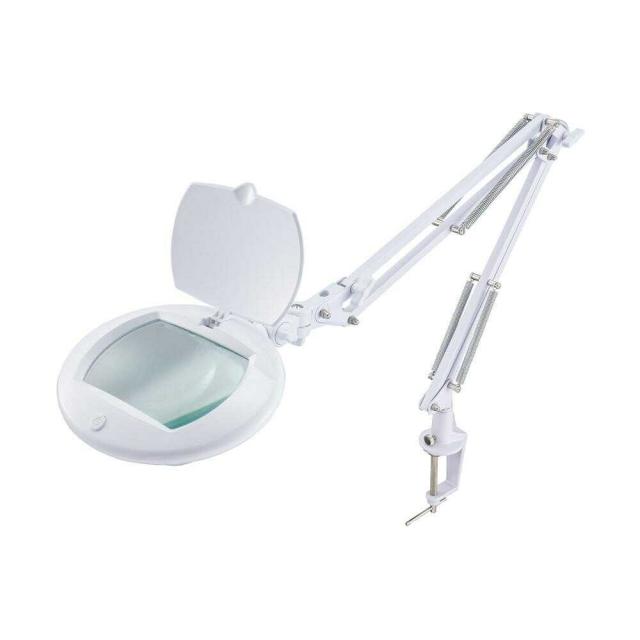 照明 スタンドライト LED ホワイト 昼白色 ルーペ付 両目で見やすい 横長レンズ 約1.8倍の拡大レンズ 手元を周囲から明るく照らす 影を作らない 読書 学習 精密な作業
