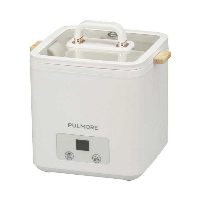PULMORE エッグクッカー 4つのメニュー エッグスタンド 卵割れ防止 1〜8時間設定タイマー 中が見える 透明蓋 コンパクトに収納 固ゆで卵 半熟卵 温泉卵 茶碗蒸 ホワイト