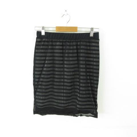 【中古】アズールバイマウジー AZUL by moussy ミニスカート タイト ボーダー 黒 M *T233 レディース