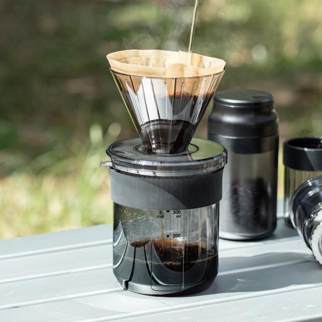 落としても割れにくいトライタン樹脂でできたドリッパーとサーバーのセットです。トライタンは耐久性の高い樹脂で軽くて丈夫です。ガラスのような高い透明度で見た目も機能もハイスペックです。