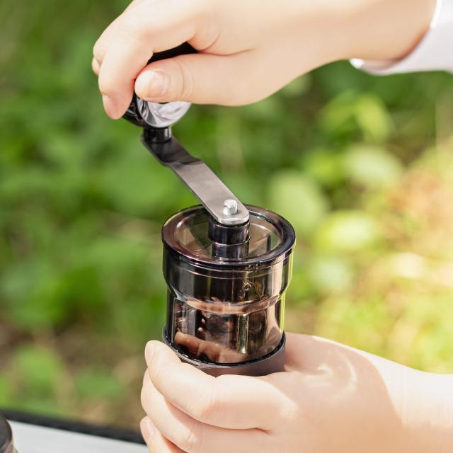 ご自宅以外でも挽きたてのコーヒーを楽しめるハンドコーヒーミルです。自分好みのコーヒーをいつでもどこでも挽きたてで楽しめるアイテムです。中が見えるクリアな本体で挽けた量が一目で分かり便利です。