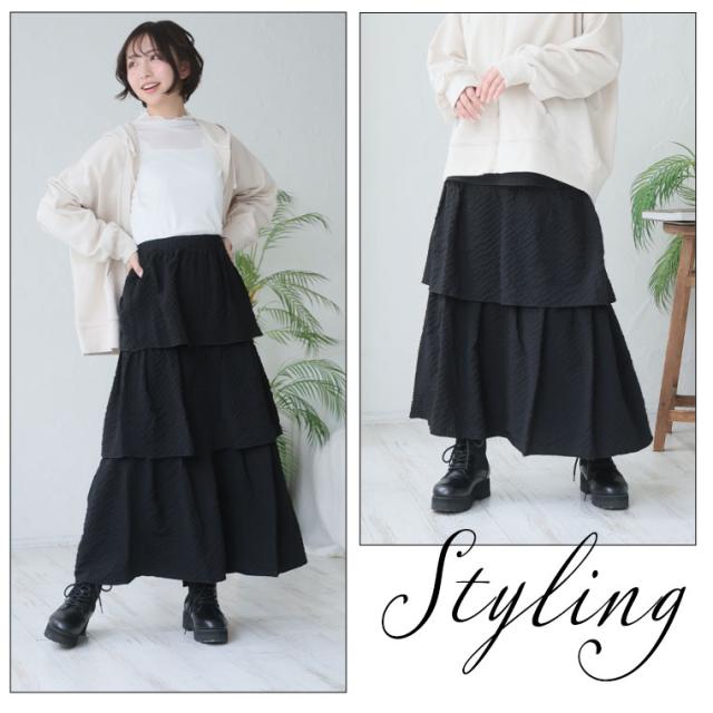 3段ティアードが女性らしい大人可愛いスカート体型別コメント