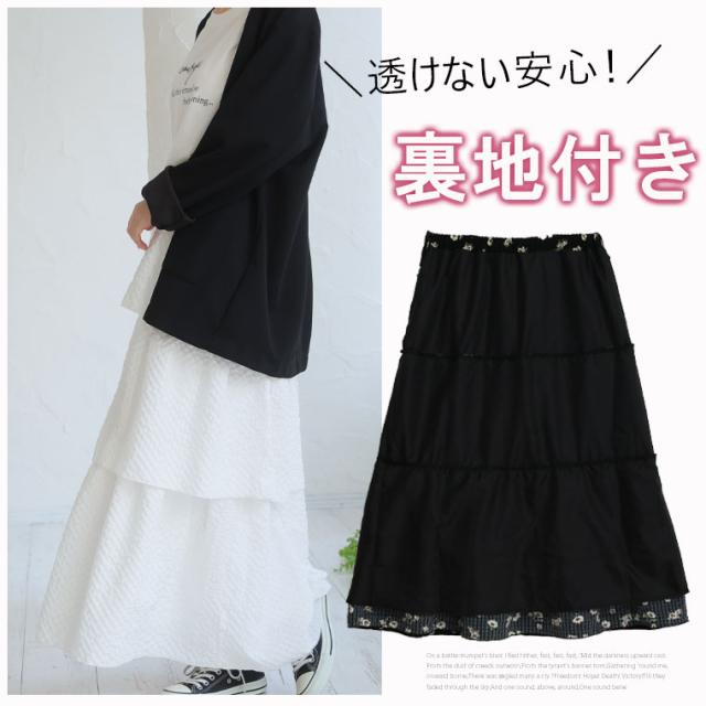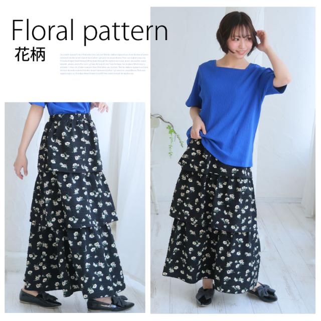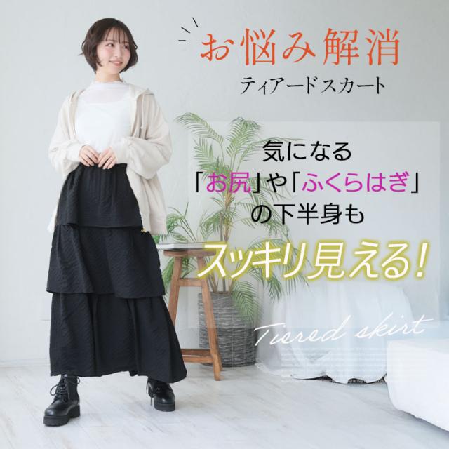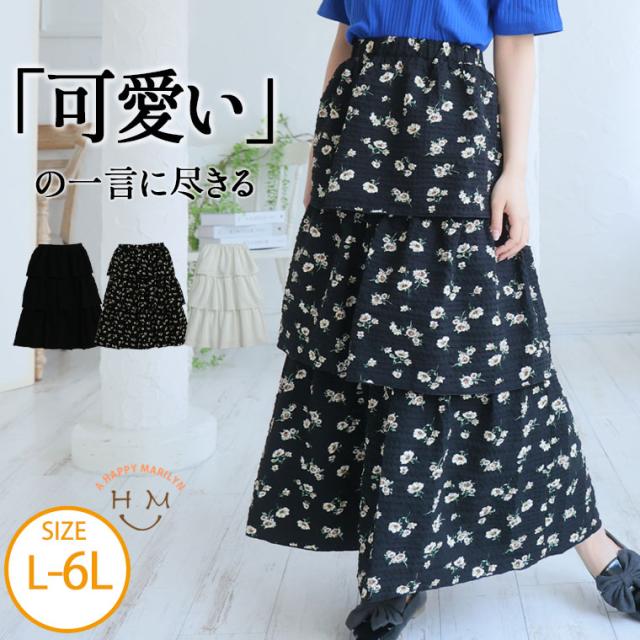 新作 大きいサイズ レディース スカート | 下半身太りを可愛く解消! 春めく ティアード フレアスカート [861650] LL 3L 4L 5L 6L