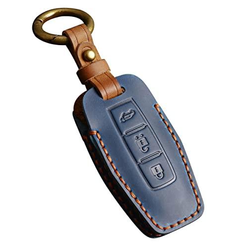 YANMW 新型アウトランダーキーケース 適合三菱アウトランダー PHEV キーカバー本革 スマートキーケース (ブルー)