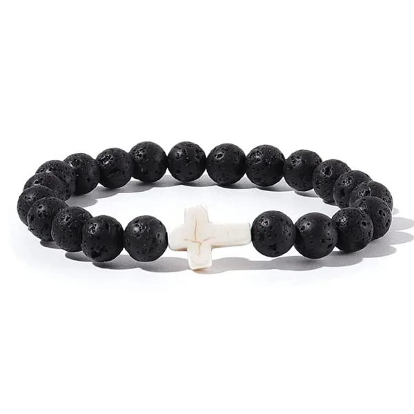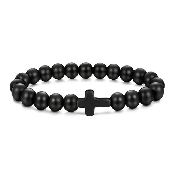 男性と女性のための天然石の木製ブレスレット,ヘマタイトクロス,男性と女性のための