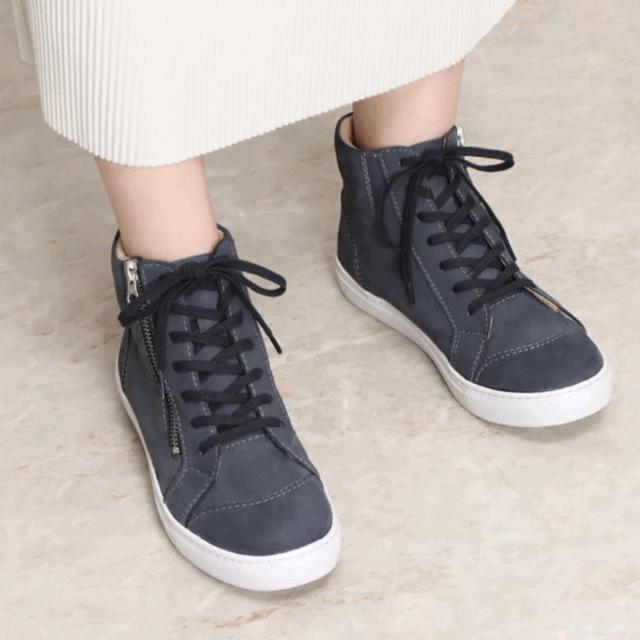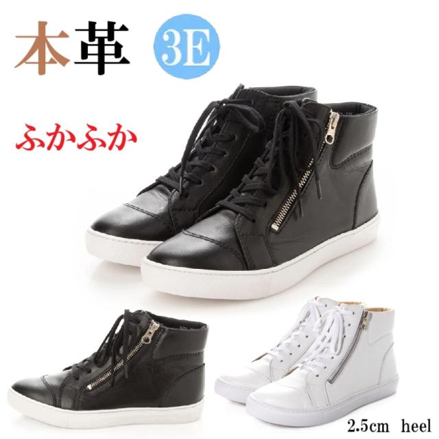 本革 ハイカットスニーカー レザーハイカットスニーカー 幅広 3e 外反母趾 シューレース ふかふかのインソール 楽ちんコンフォートスニーカー 内側ファスナー 履きやすい