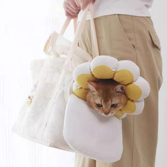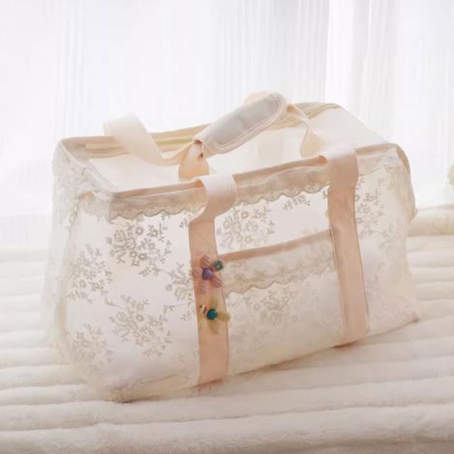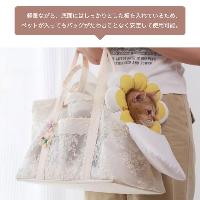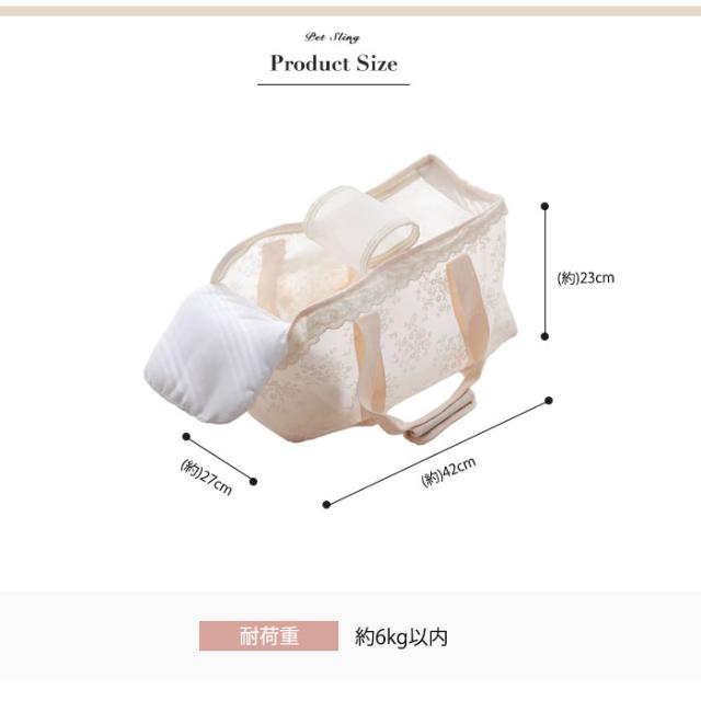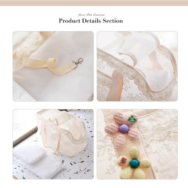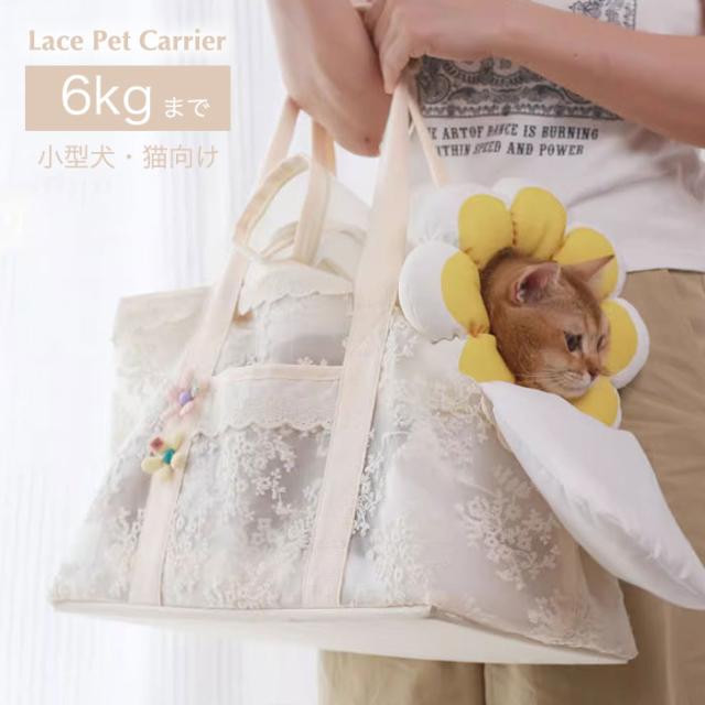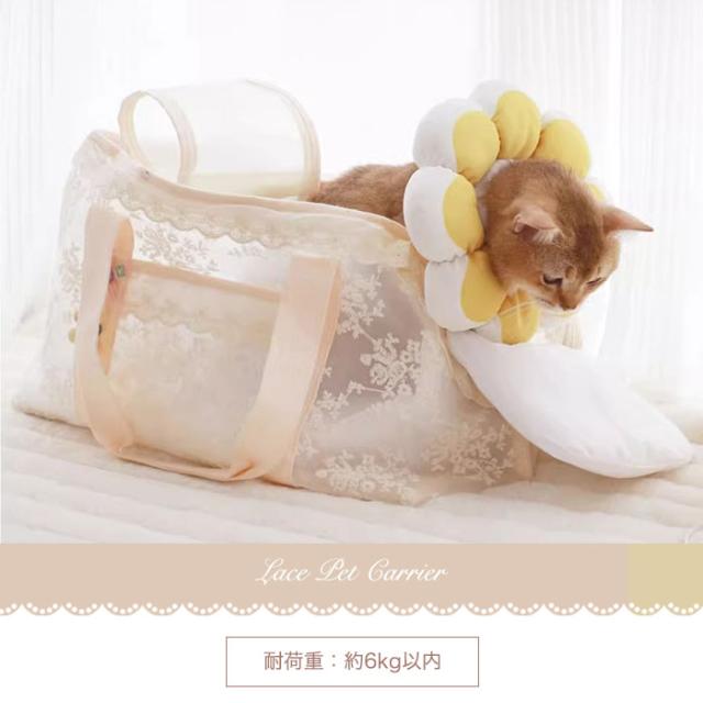 外出先でも注目を集める、シースルー刺繍レースデザインの姫系ペット用キャリーバッグ。