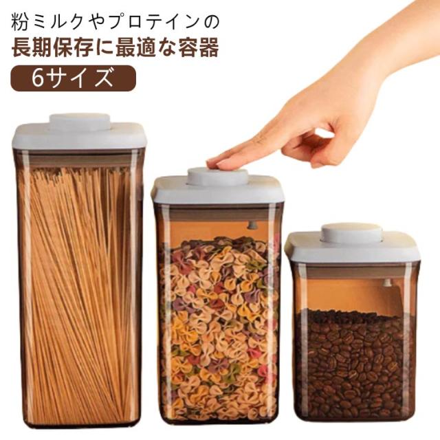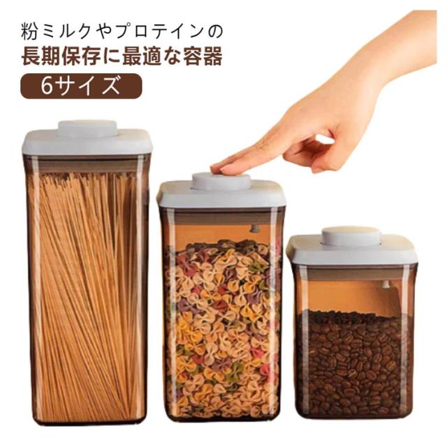 | 【6サイズ】粉ミルクやプロテインの長期保存に最適な容器 フタについているボタンを押すだけで密閉可能! 片手でワンタッチなので、料理中の手がふさがっている状況でも使いやすいのがうれしいポイント。 クリアだけでなく、茶色のデザインは遮光効果があり粉ミルクの鮮度を保てます♪ フタ部分はスプーン収納所があり、サイズ違いスプーンにも対応できます。 コンパクトなサイズ、外遊びや旅行に大変便利なアイテムです。 粉ミルクだけでなく、米やナッツなどの保存容器としてもおすすめ。 | |