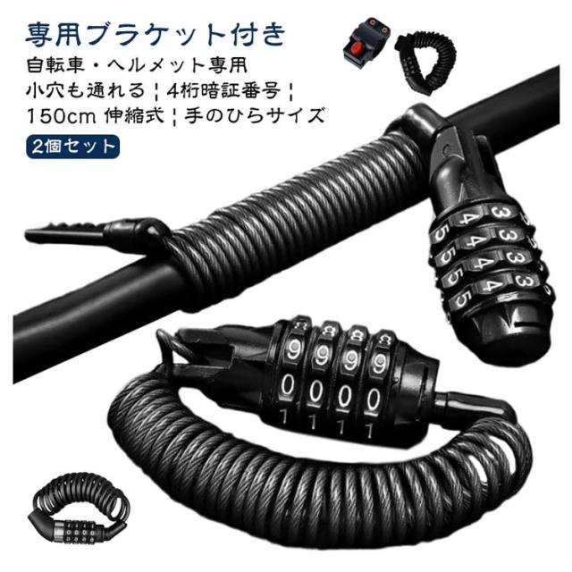 ブラケット付き ロング 軽量 ダイヤル ワイヤー 鍵 【2個セット】 カギ ダイヤルロック 自転車 チェーン 長い ヘルメット 自転車ロックリング 回すタイプ 盗難防止 ワイヤー 【2個セット】 式 防犯 頑丈 収納 四桁 輪っか lock 防水 ワイヤーロック
