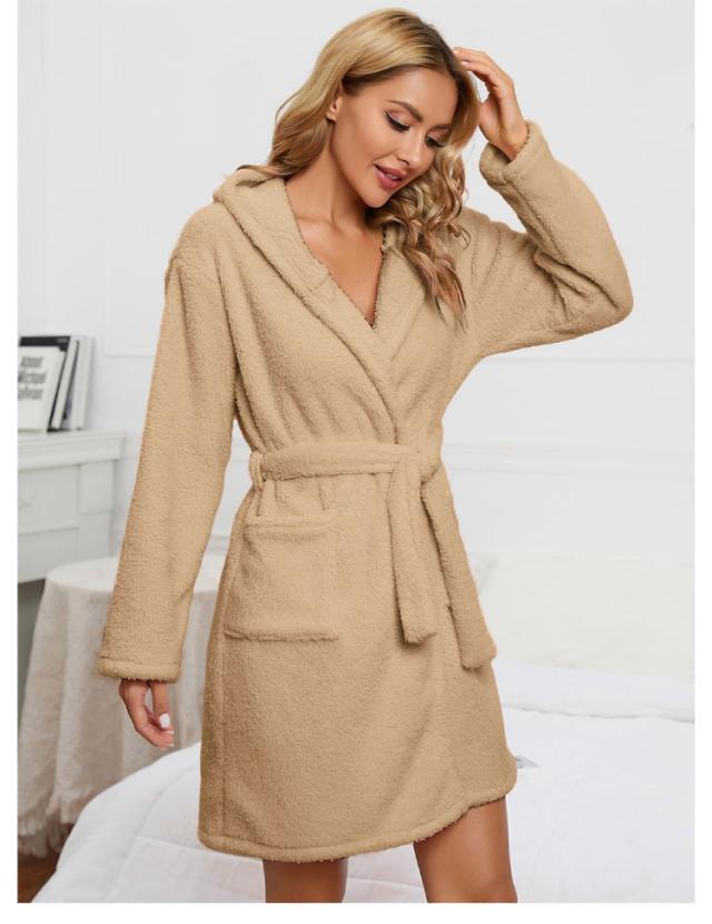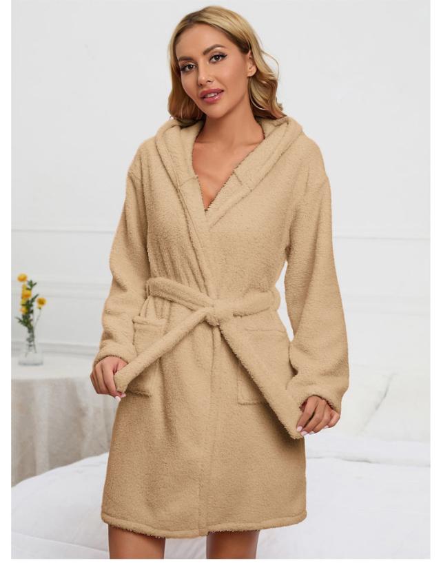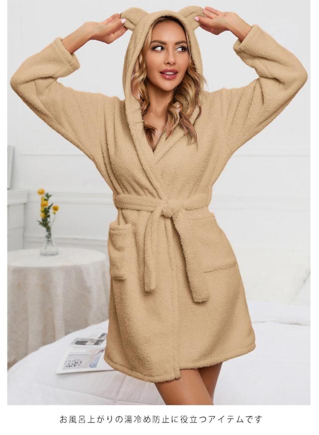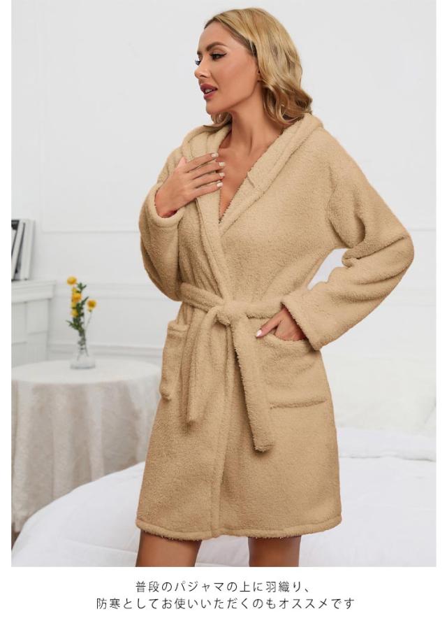 柔らかい ルームウェア バスローブ フランネル 長袖 ナイトガウン ショート もこもこ 和風 パジャマ お風呂上り 肌に優しい ガウン バスローブ 部屋着