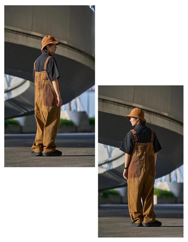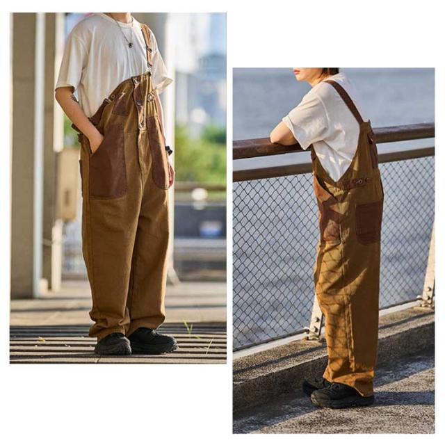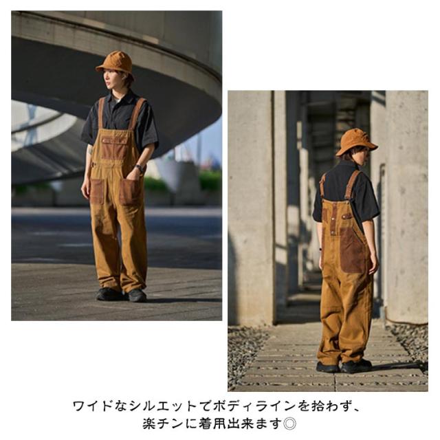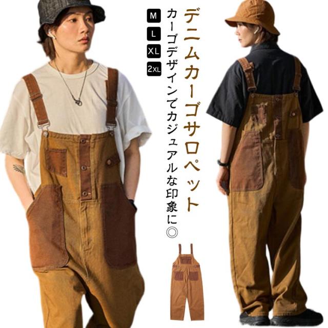 デニム サロペット デニム オーバーオール デニムカーゴサロペット オールインワン つなぎ ブラウン メンズ レディース