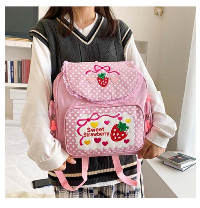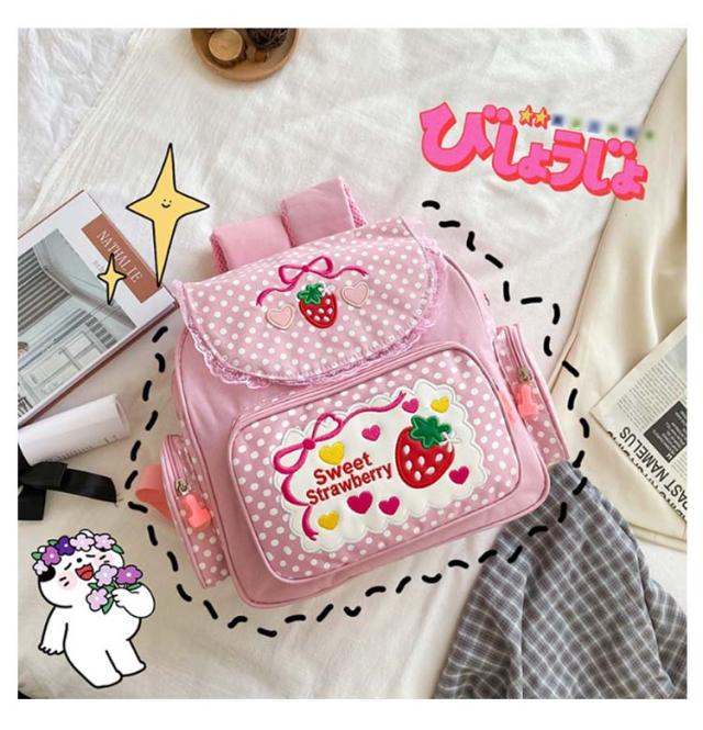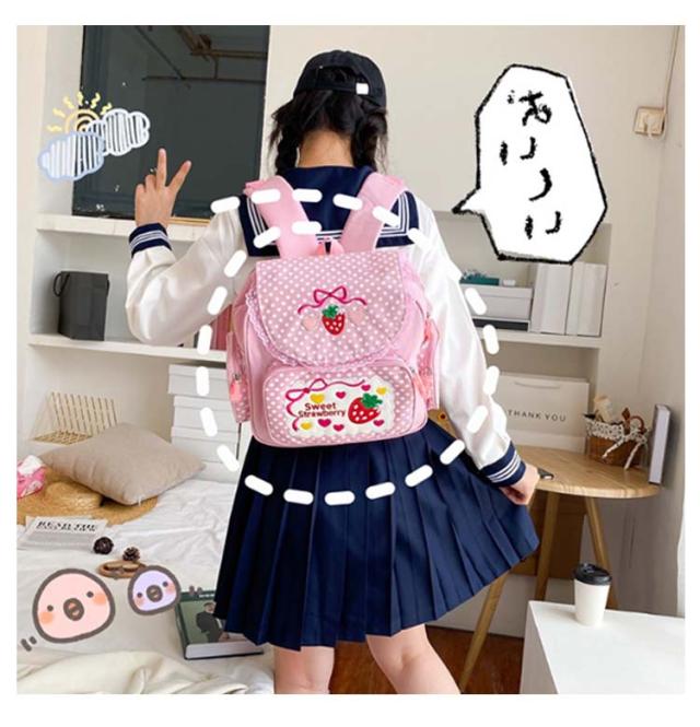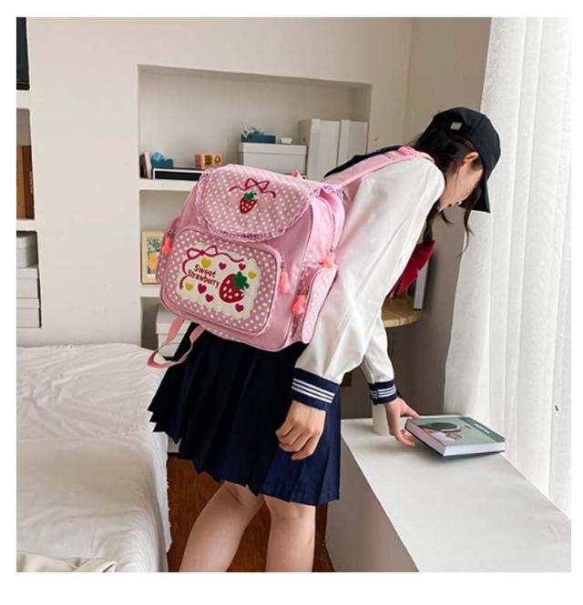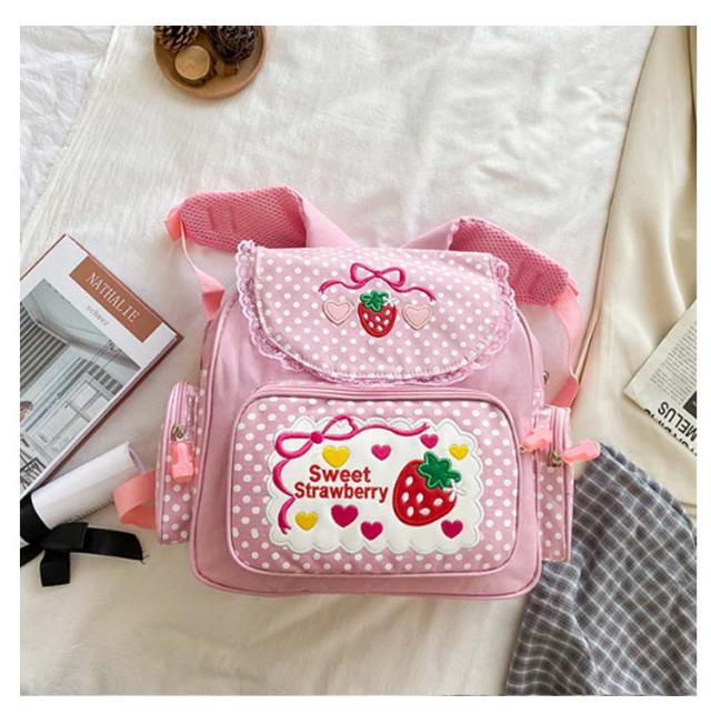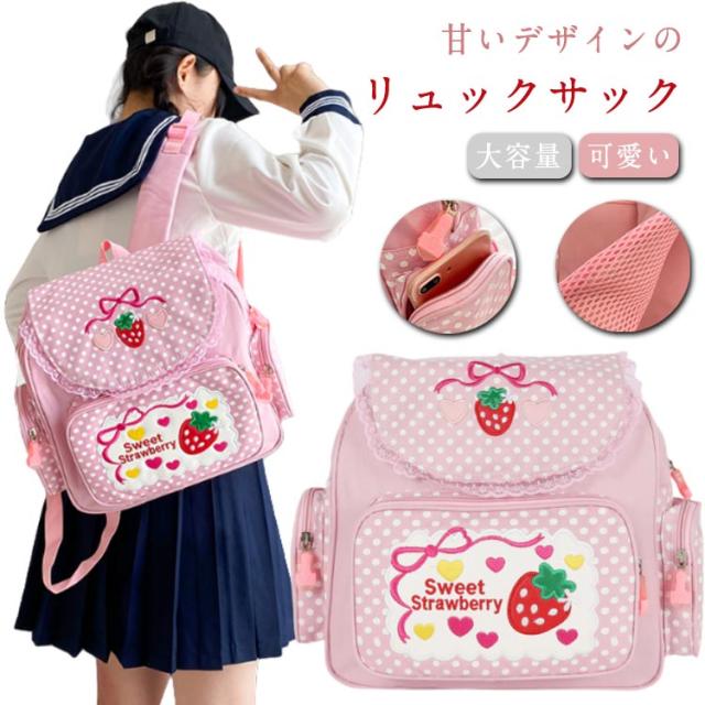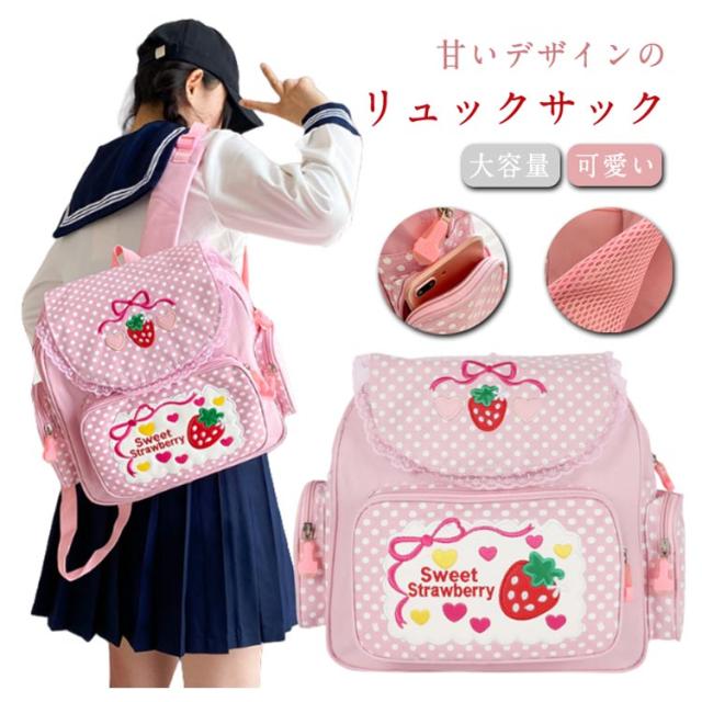 カバン 子供 大容量 レディース お出かけ 女の子 リュック イチゴ柄 かわいい おしゃれ 多収納 リュックサック 通園 遠足 通学 リュック バッグパック お祝い ギフト プレゼント ピンク 丈夫