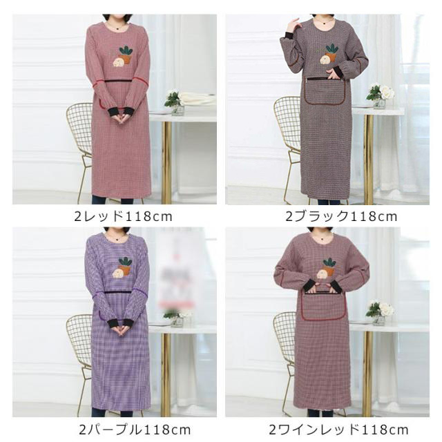 | ファッション性をプラスした実用的かつ、機能的なデザインの割烹着です。 ゴム入りの袖で家事もラクラク 機能的な2つのポケット装備。 | |