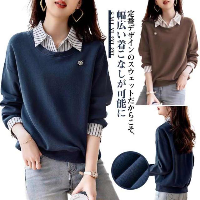 トレーナー スウェット レディース トップス 無地 おしゃれ 長袖 大きいサイズ 韓国 メンズ 大人 部屋着 スウェット カットソー 長袖 大きめ ゆったり 重ね着 トレーナー レイヤード風 体型カバー 春 秋 冬 カジュアル シンプル 送料無料 プレゼント